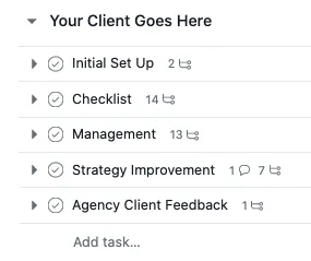 This way you have visibility into all of the set up tasks, ads account optimizations, and allows you to share any feedback or set up tasks for us.